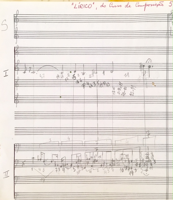 A seguir, apresento a partitura para "Lírica Espacial" (ou com o nome original de "Lírico"), exemplificando o esquema de notação adotado. Eis a sua Introdução: