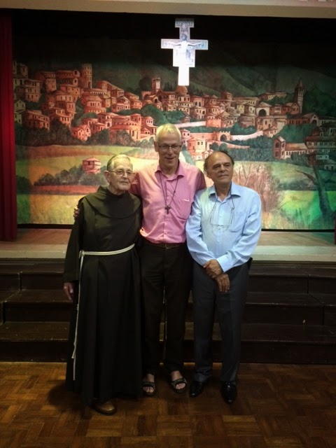 | Da esq. p/ dir.: frei Joel, Provincial holandês e o autor. Ao fundo, vista parcial da cidade de Assis. |